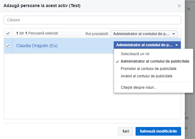 Odată ce ai adăugat în Business Manager atât pagina de Facebook pe care o administrezi şi un cont de Facebook Ads, vei putea da acces agenţiei: