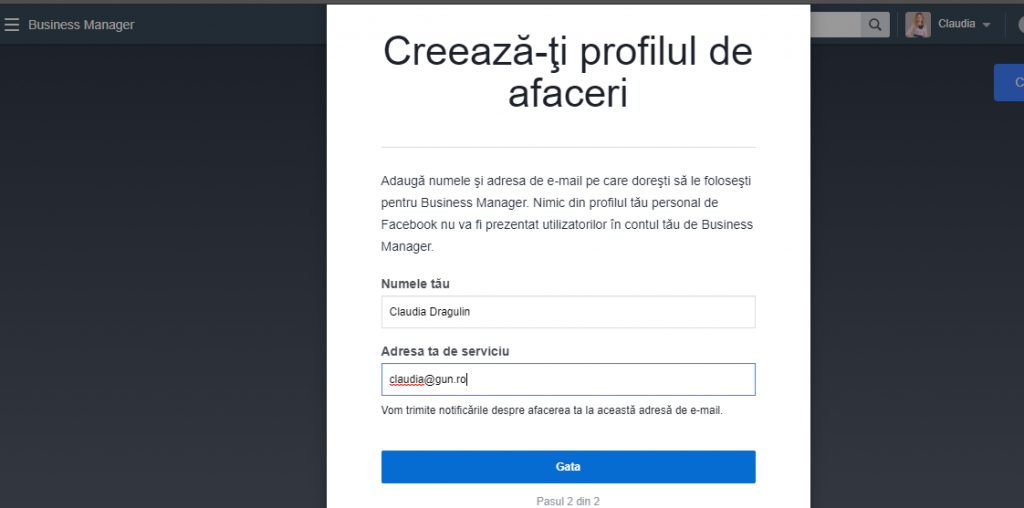Şi astfel, ţi-ai creat contul de Business Manager! Felicitări!