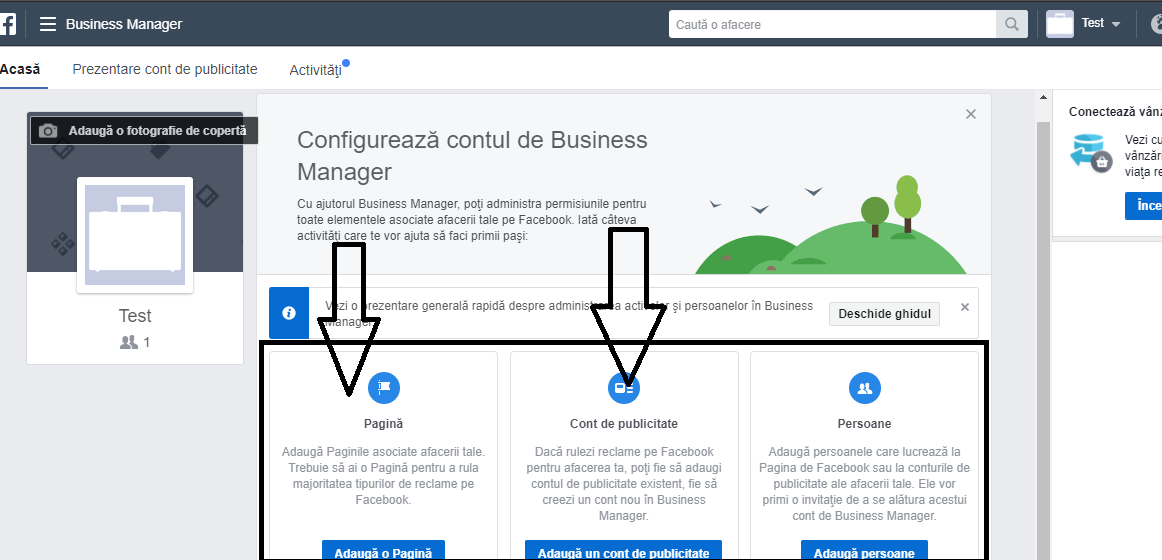 - Cum integrezi în Business Manager o pagină şi un cont Facebook pe care le administrezi?