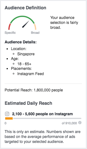 După ce ai ales criteriile de targetare, Facebook îți va spune cât de specifică sau mare este audiența ta, criteriile de targetare, care este reach-ul potential și zilnic.
