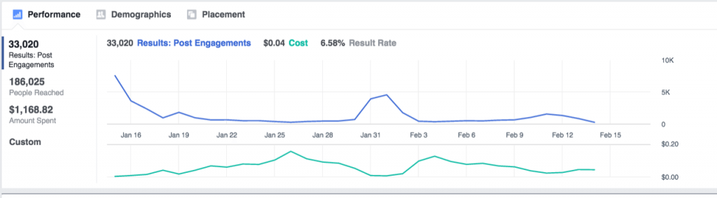 La fel ca în cazul unei foi de calcul, tabelul din Facebook Ads Manager îți dă posibilitatea de a vedea cât de bine performează ad-urile pe care le-ai creat. Rezultatele, costul și suma consumată sunt doar câteva informații pe care le vei găsi la prima vedere.