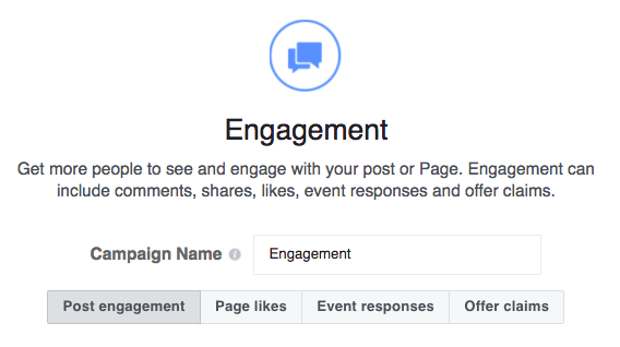 Pentru acest obiectiv poți alege ce tip de interacțiune îți dorești: post engagement (interacțiunea cu postarea), page likes, event responses și offer claims. Pentru Instagram Ads este valabilă doar opțiunea post engagement.