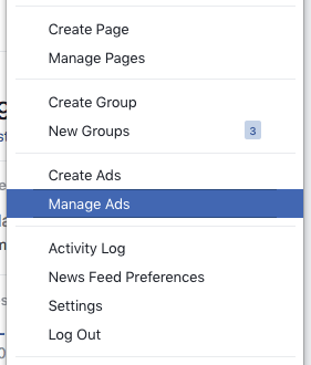 Pentru a accesa Facebook Ads Manager apasă pe săgeata direcționată în jos din colțul de dreapta – jos a oricărei pagini de Facebook și selectează „Manage Ads” sau „Administrează Reclame”. Odată ajuns aici, trebuie doar să apeși pe butonul verde „Create Ad” sau „Creează Reclamă” pentru a începe.